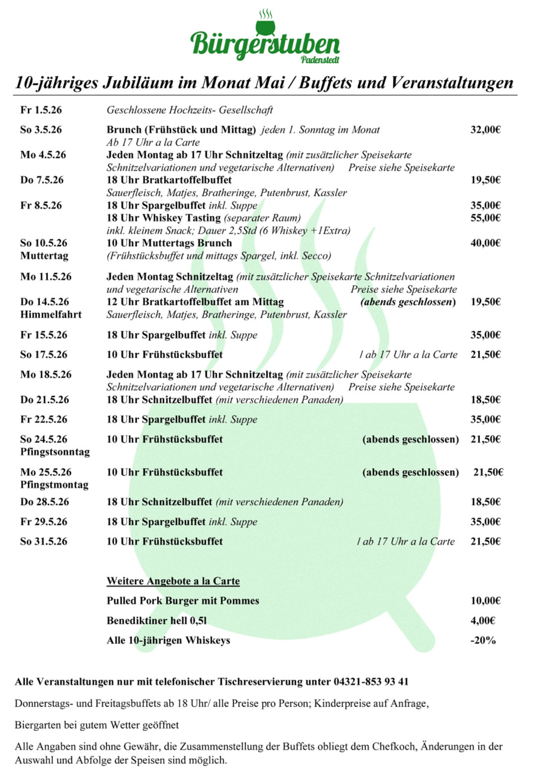 • Für das Bratkartoffel-Buffet am 16.04. gibt es noch freie Plätze – schnell reservieren lohnt sich!